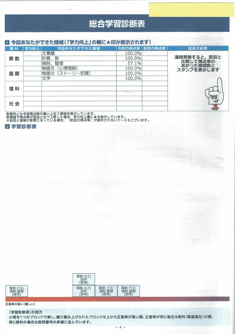 非常に健闘したと思います!年長でこの結果は親としても驚きでした。